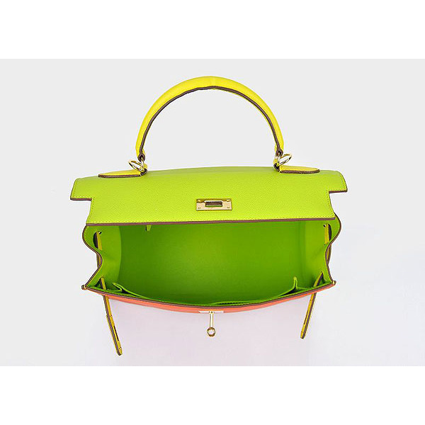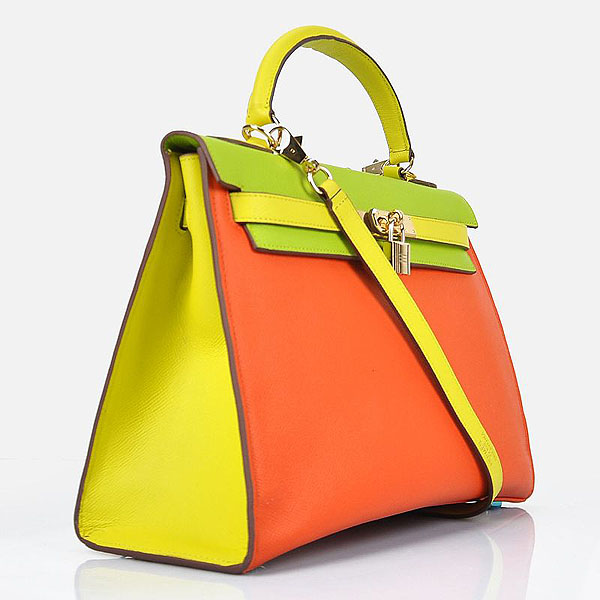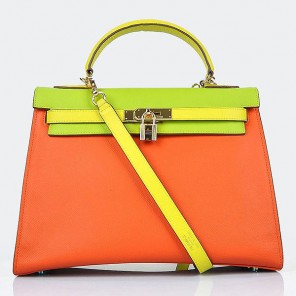 Hermes Kelly 32cm Togo Leather Bag Green-Orange-Yellow with Gold hardware