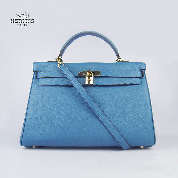Hermes Kelly 35cm Togo Leather Bag Blue 6308 Gold Hardware