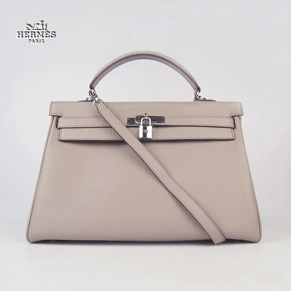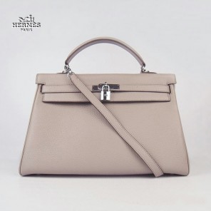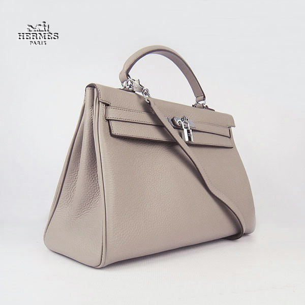 Hermes Kelly 35cm Togo Leather Bag Grey 6308 Silver Hardware