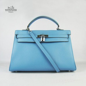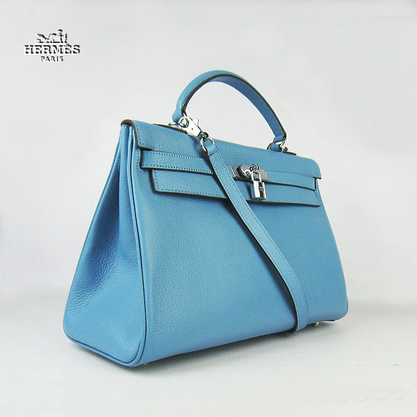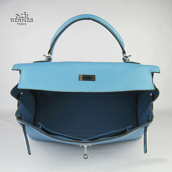 Hermes Kelly 35cm Togo Leather Bag Light Blue 6308 Silver Hardware