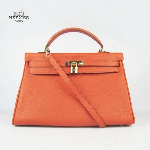 Hermes Kelly 35cm Togo Leather Bag Orange 6308 Gold Hardware