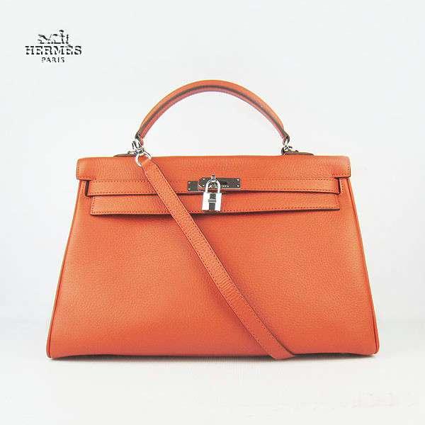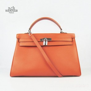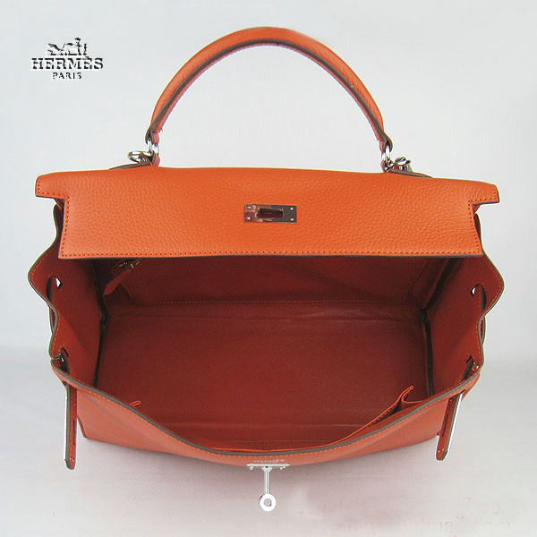 Hermes Kelly 35cm Togo Leather Bag Orange 6308 Silver Hardware