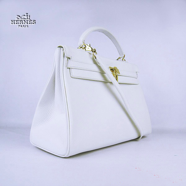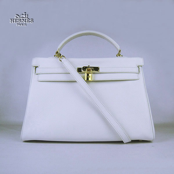 Hermes Kelly 35cm Togo Leather Bag White 6308 Gold Hardware