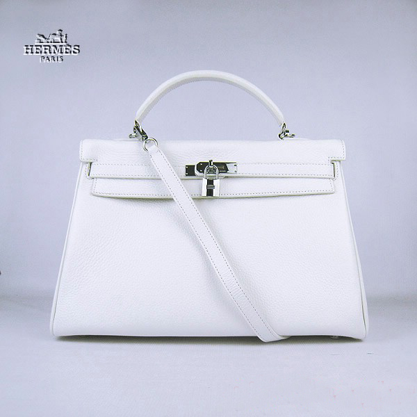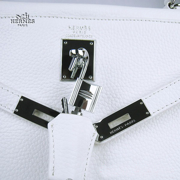 This Hermes Kelly 35cm Togo Leather Bag White 6308 comes with:Hermes lock,keys,clochette,sleepers,care booklet,rain protection,tags.