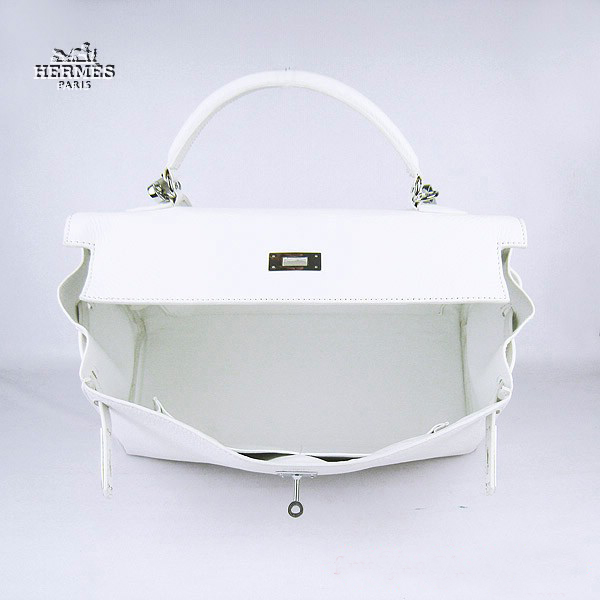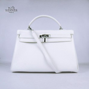 Hermes Kelly 35cm Togo Leather Bag White 6308 Silver Hardware