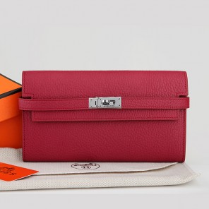 Hermes Kelly Original Clemence Leather Bi-Fold Wallet A708 Claret