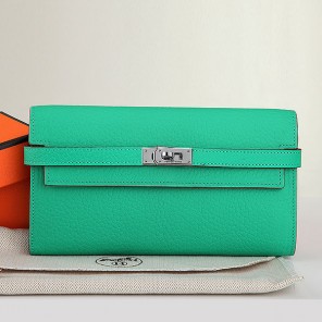Hermes Kelly Original Clemence Leather Bi-Fold Wallet A708 Green