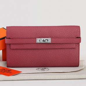 Hermes Kelly Original Clemence Leather Bi-Fold Wallet A708 Rose