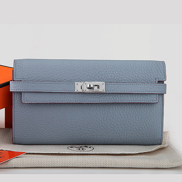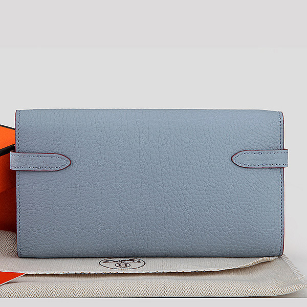 Hermes Kelly Original Clemence Leather Bi-Fold Wallet A708 Sky Blue