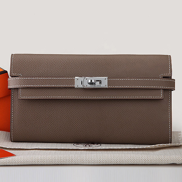 Hermes Kelly Original Saffiano Leather Bi-Fold Wallet A708 Dark Gray