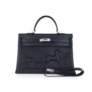Hermes Kelly bag 35CM with Embossed logo Handbag black