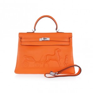 Hermes Kelly bag 35CM with Embossed logo Handbag orange Come with Hermes authenticity card, Hermes tags,Hermes dust bag and Hermes care booklet