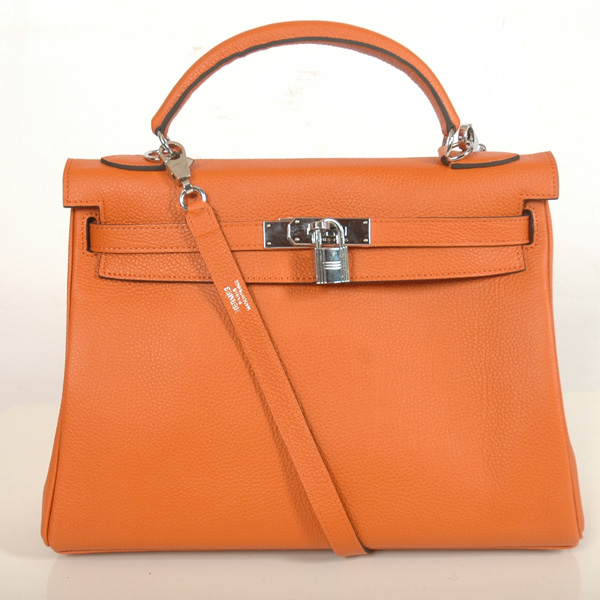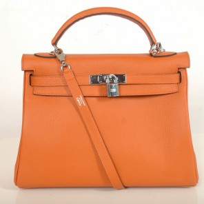 - Hermes Kelly togo leather 32CM togo in Orange with Silver hardware