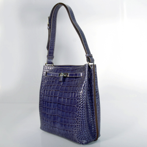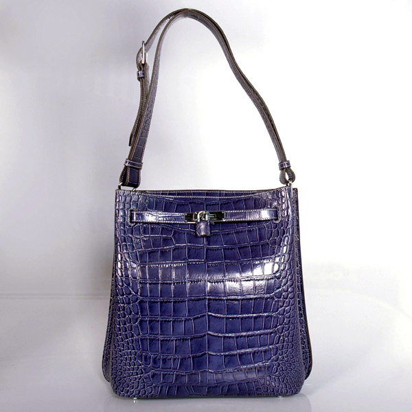 Hermes Sokelly Medium Crocodile stripes leather in Medium Blue with Silver hardware Come with Hermes authenticity card, Hermes tags,Hermes dust bag and Hermes care booklet