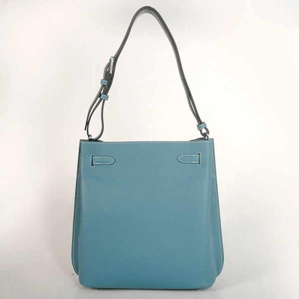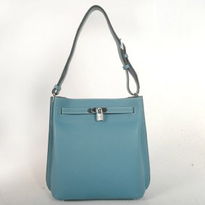 - Hermes Sokelly Medium clemence leather in Medium Blue with Silver hardware