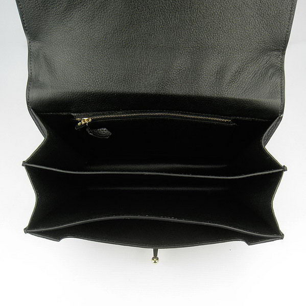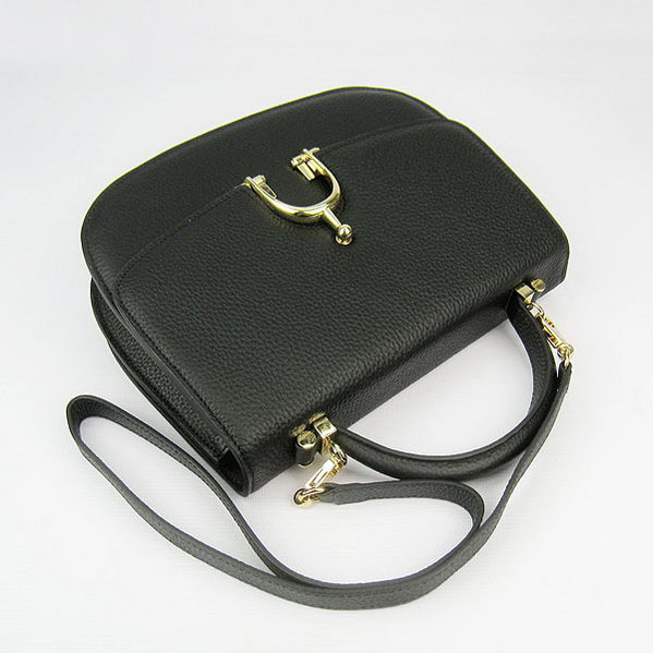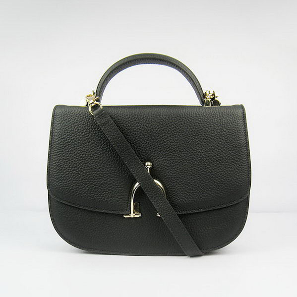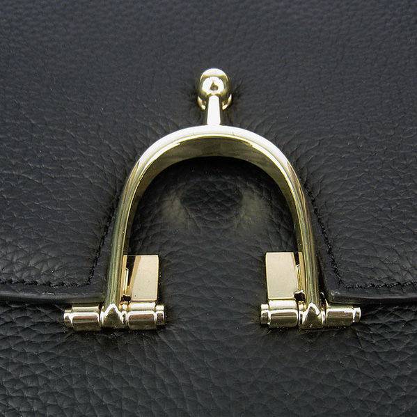 Hermes Stirrup Shoulder Bag Black Calfskin Gold