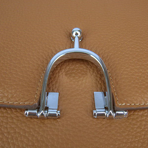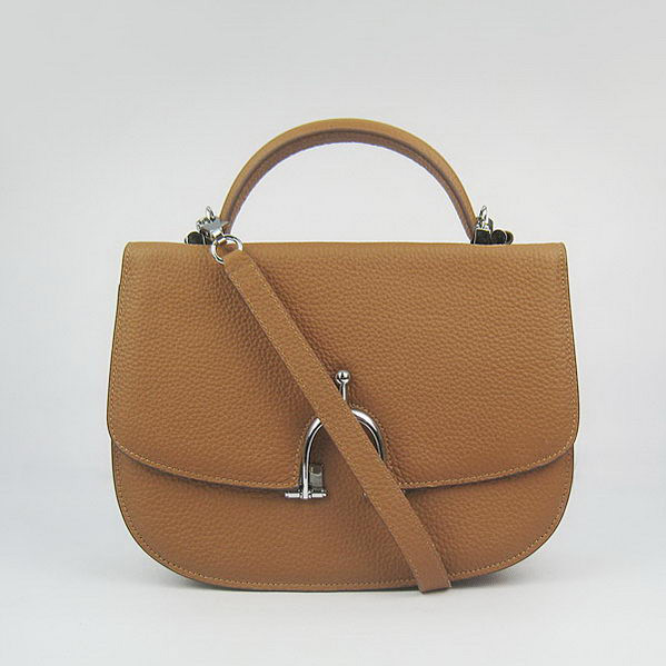Hermes Stirrup Shoulder Bag Camel Calfskin Silver