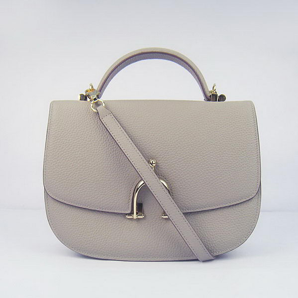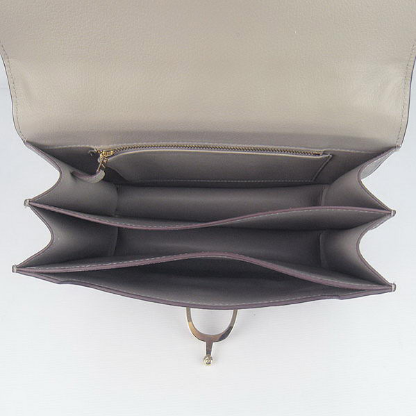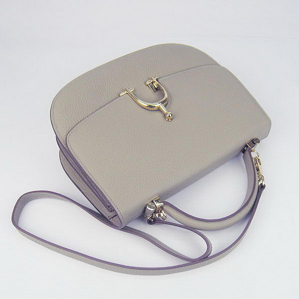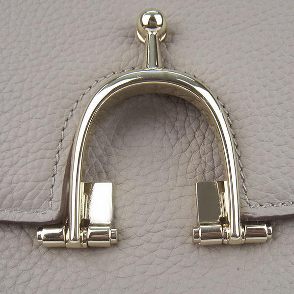 Hermes Stirrup Shoulder Bag Grey Calfskin Gold