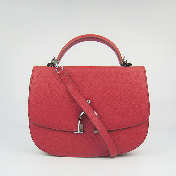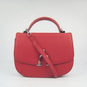 Hermes Stirrup Shoulder Bag Red Calfskin Silver