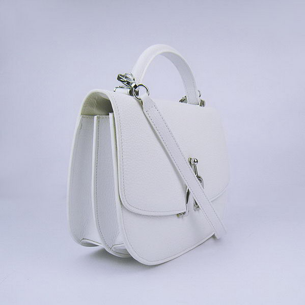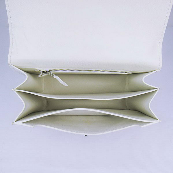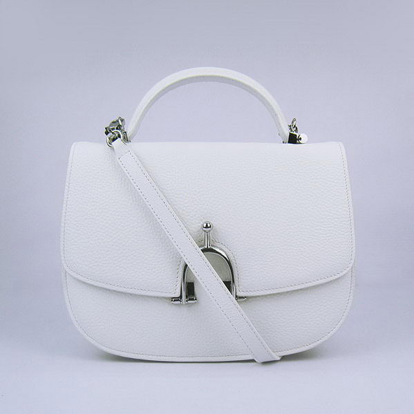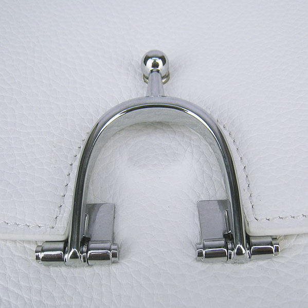 Hermes Stirrup Shoulder Bag White Calfskin Silver