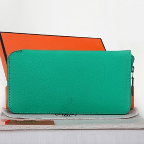 Hermes Zipper Wallet Original Clemence Leather A309 Green