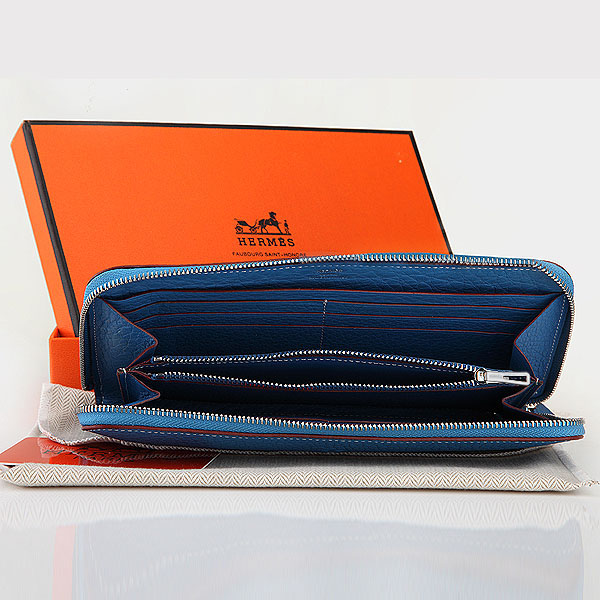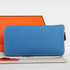 Hermes Zipper Wallet Original Clemence Leather A309 Medium Blue