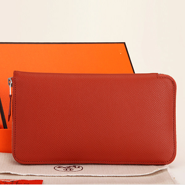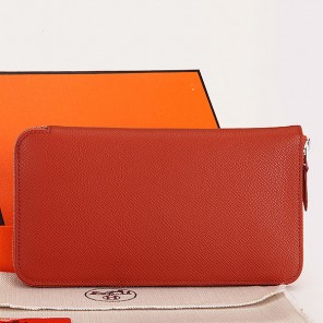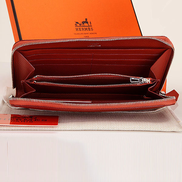Hermes Zipper Wallet Original Saffiano Leather A309 Red-brown