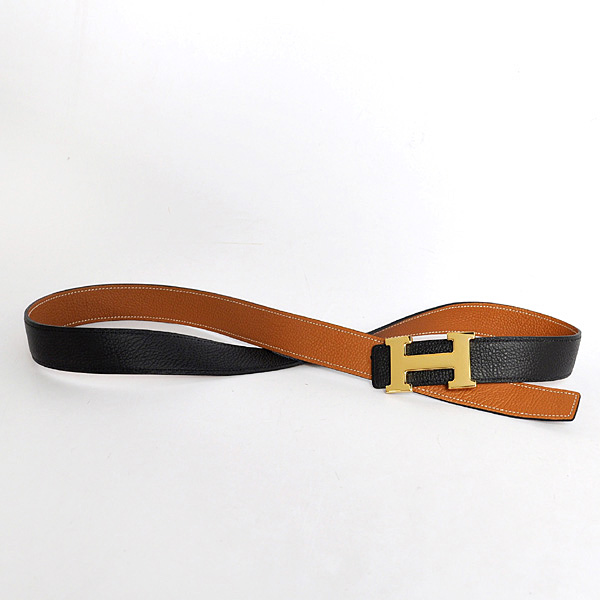 Hermes belt leather in Black/Camel with H Gold Buckle