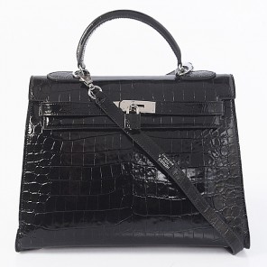 Hermes kelly 32CM Crocodile leather in Light Black with Silver hardware