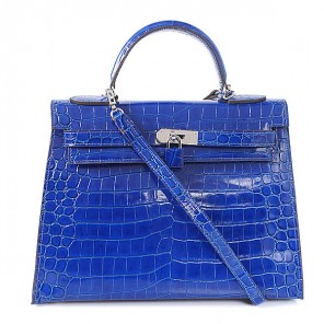 Hermes kelly 32CM Crocodile leather in Light blue with Silver hardware