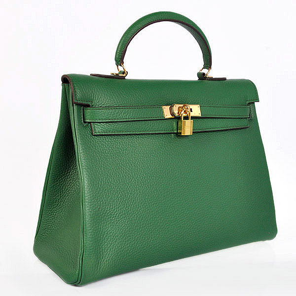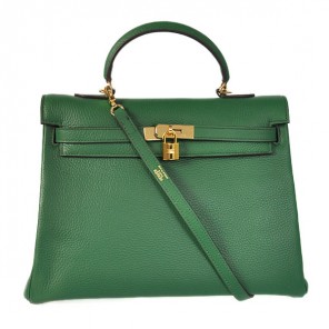 - Hermes kelly 35CM Dark green clemence leather(Gold)