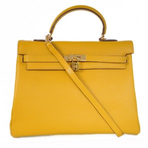 Hermes kelly 35CM Yellow clemence leather(Gold) Come with Hermes authenticity card, Hermes tags,Hermes dust bag and Hermes care booklet