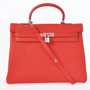 Hermes kelly 35CM clemence leather in Flame with Silver hardware Come with Hermes authenticity card, Hermes tags,Hermes dust bag and Hermes care booklet