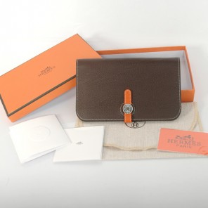 Hermes passport Wallet clemence leather in Dark Brown/Orange Come with Hermes authenticity card, Hermes tags,Hermes wallet dust bag, Hermes wallet box and Hermes care booklet.