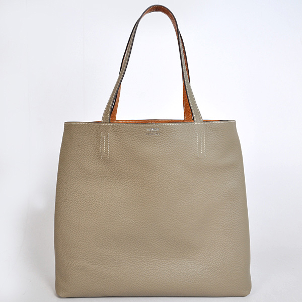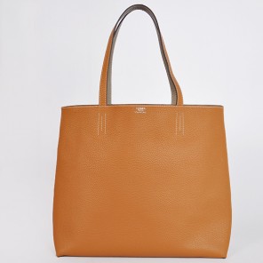 Hermes shopping bag clemence leather in Camel/Dark Grey Come with Hermes authenticity card, Hermes tags,Hermes dust bag and Hermes care bookle