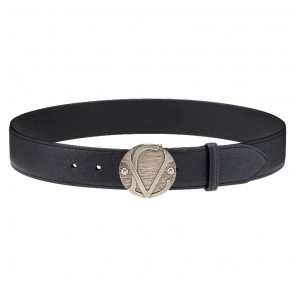 This elegant mid-waist belt in supple natural calf leather features a feminine Art Nouveau-style buckle inspired by the lock of a Louis Vuitton trunk made in 1904.