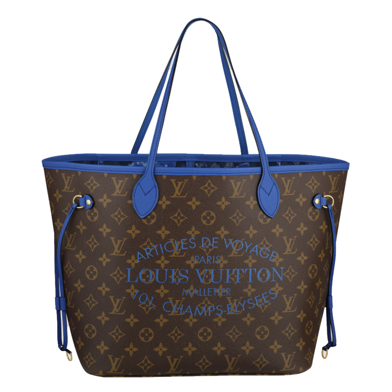 The Monogram canvas Neverfull MM boasts some distinctive summery touches. Theses include a brightly coloured & quot Articles de voyages" motif on the outside and a dazzling ikat flower design on the inside.