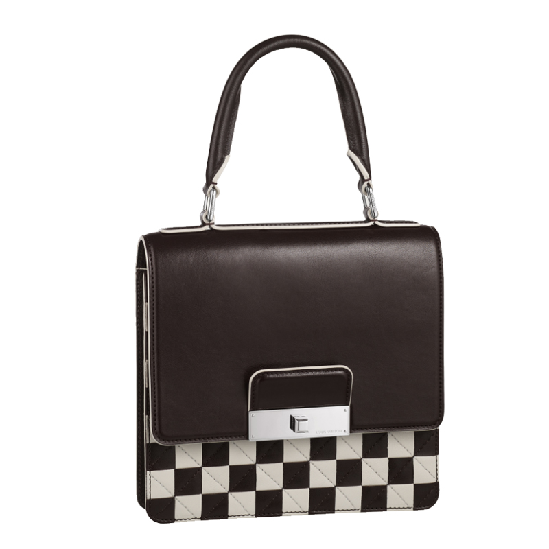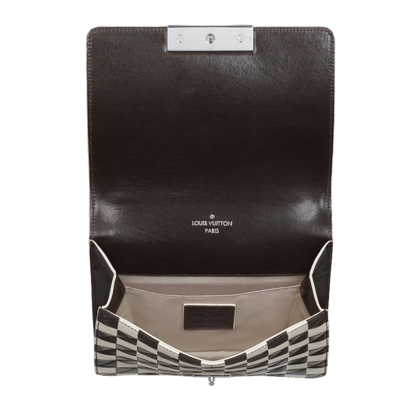 One of the standout looks of Louis Vuitton's Spring/Summer 2013 women's fashion show, the Enveloppe bag in Damier Mosaic nods to the graphic spirit of the Sixties. Its apparently simple design is the result of elaborate craftsmanship: strips of calfskin in two different colors are woven by hand, then overstitched to create a quilted effect which contrasts with the plain calf leather flap.