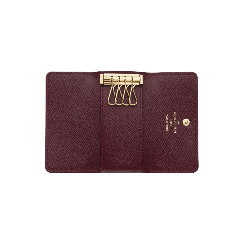 The ideal way to carry keys either in a bag or in a pocket, this holder also serves as a colourful reminder of Louis Vuitton鈥檚 rich history, with its trunk label decoration, on iconic Damier canvas.