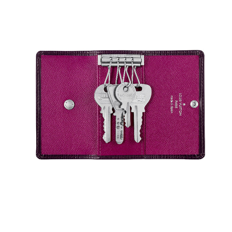 This compact key holder in Epi leather holds four keys on individual brass hooks. An elegant accessory to complement any bag from the collection.