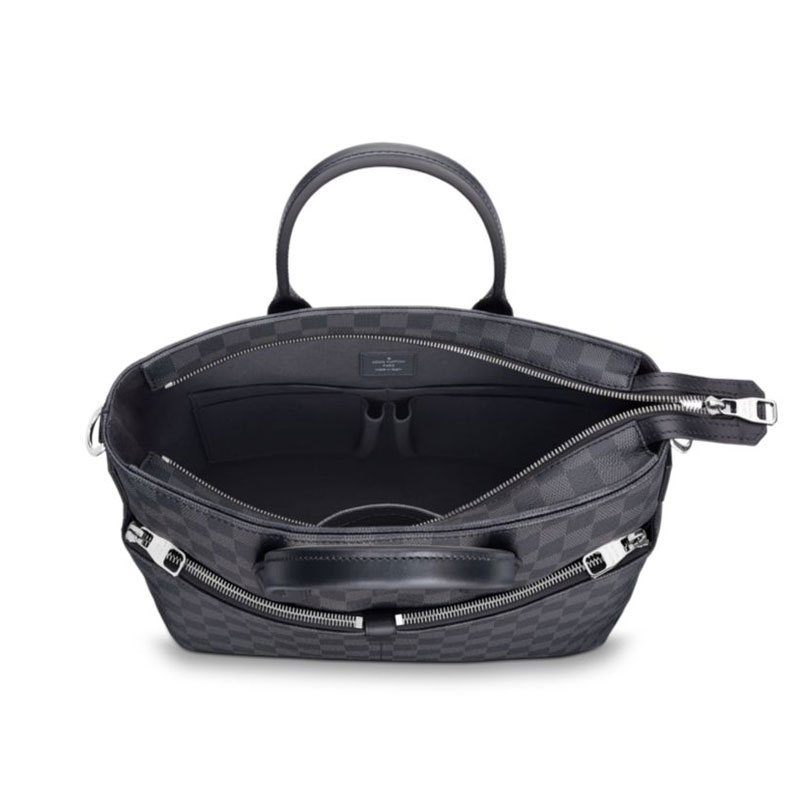 The 7 Days a Week in Damier Graphite canvas is an innovative city bag with the iconic style for which Louis Vuitton is known. Incredibly versatile, it is perfect for both business and causal use and can fit a 15” laptop. The two exterior pockets give you instant access to your daily essentials.