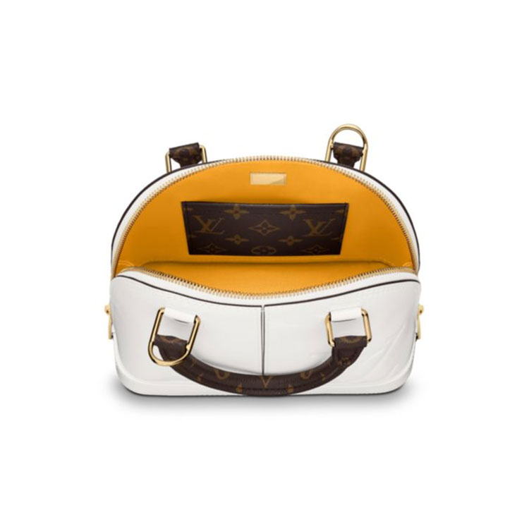 The House continues to reveal new facets of Vernis leather with an unexpected reinterpretation of one of Louis Vuitton鈥檚 most iconic shapes: the Alma BB. The audacious color and Monogram canvas trim gives it a stunningly disruptive feel.