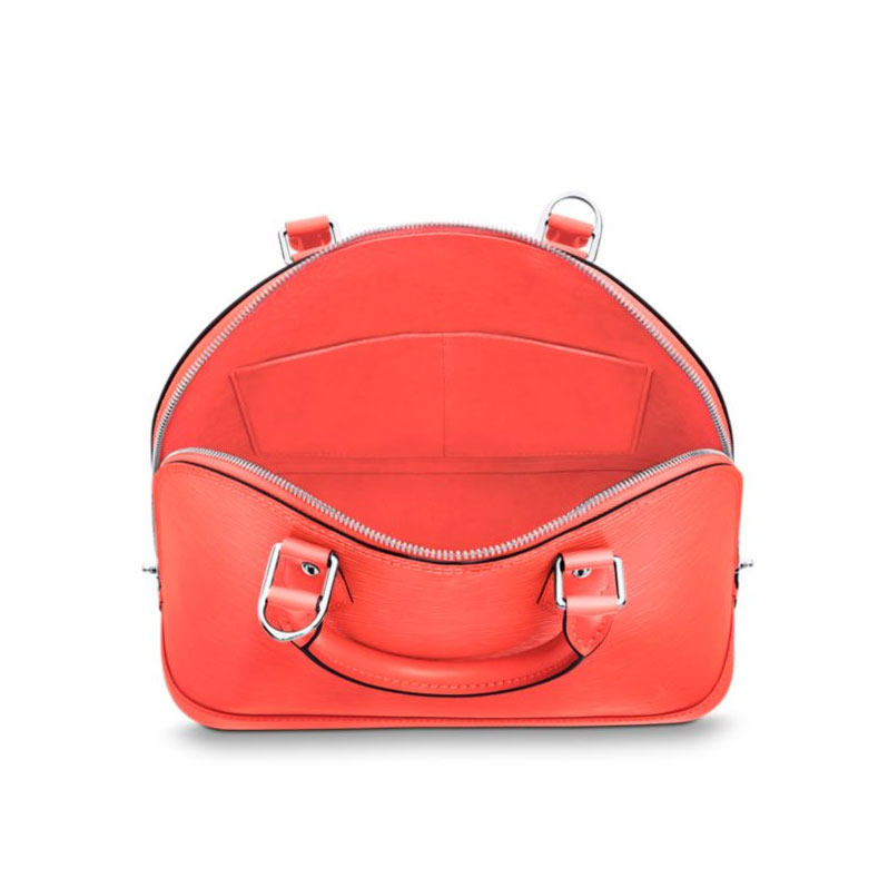 The most structured of the iconic Louis Vuitton handbags. The original was the creation of Gaston Vuitton, who named it for the Alma Bridge, a span that connects two fashionable Paris neighborhoods. This contemporary version of the iconic silhouette, crafted of Epi leather, comes in an array of bright, bracing colors.