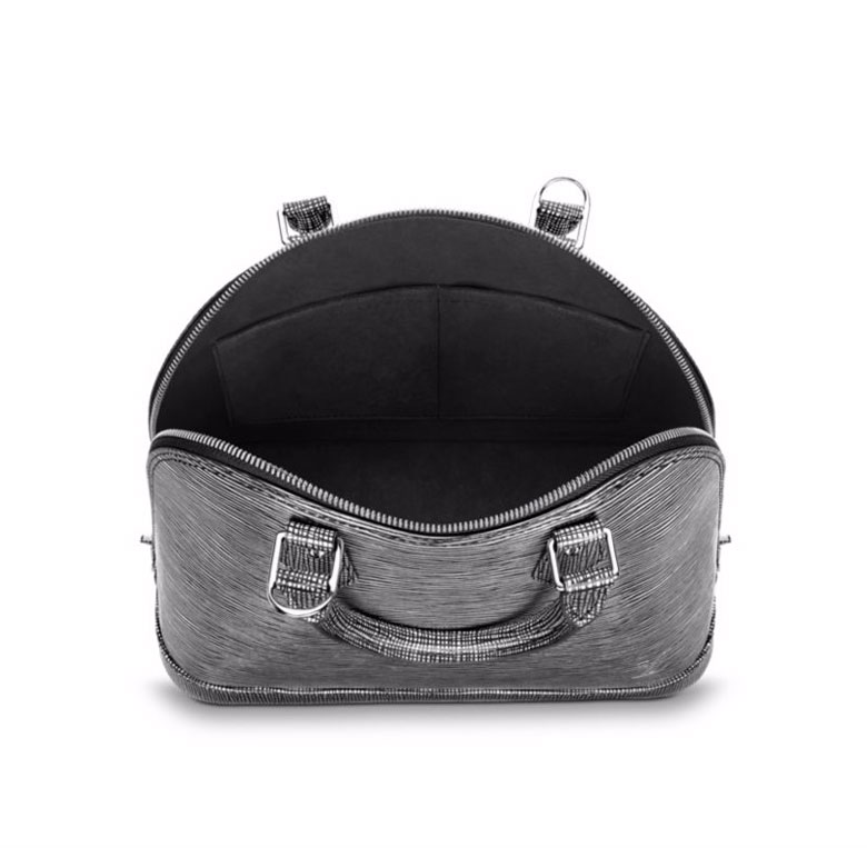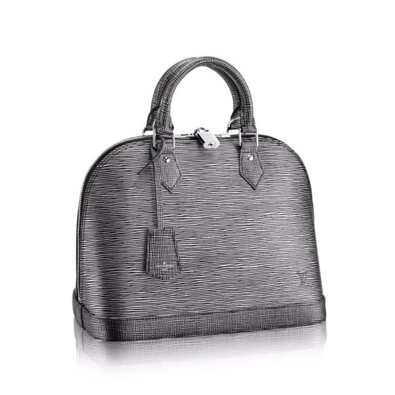 The most structured of the iconic Louis Vuitton handbags. The original was the creation of Gaston Vuitton, who named it for the Alma Bridge, a span that connects two fashionable Paris neighborhoods. This contemporary version of the iconic silhouette, crafted of Epi leather, comes in Black Silver color.