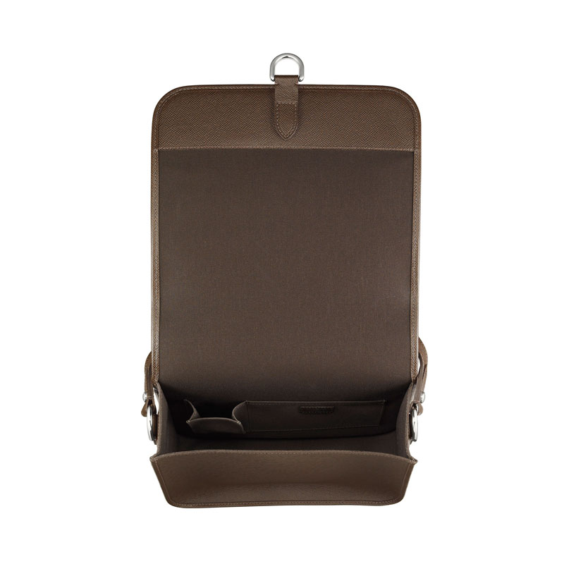 Andrei is a casual, business bag crafted in Taiga leather with a large flap and snap closure. It can be carried on the shoulder or across the body thanks to its adjustable textile strap.