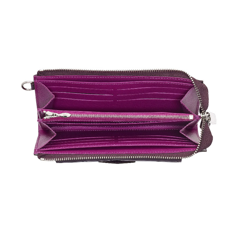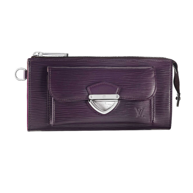 This elegant, zipped, clutch wallet is in Epi leather. It is versatile, with many practical pockets and compartments, a press lock and D-ring.