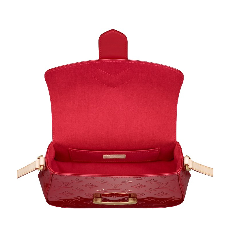Sophisticated Monogram Vernis,shiny golden brass details and a feminine curved shape give the Bellflower PM a refined look,elegant cross-body carry makes it perfect for day-to-everning glamour.