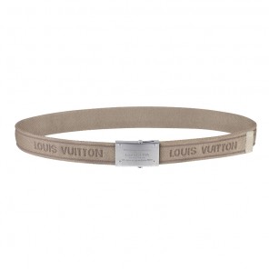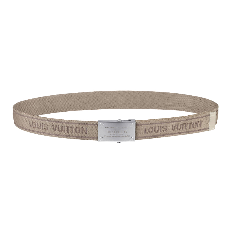 This casual belt in high-quality cotton webbing, woven with the Louis Vuitton signature, features an easy-closing buckle inspired by the historic "Louis Vuitton Inventeur" plaque dating back to 1875.