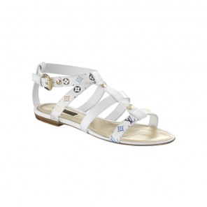 Louis Vuitton's vibrant Monogram MultiColore canvas is teamed with white patent leather on these eye-catching flat sandals, which combine comfort with up-to-the-minute summer style.