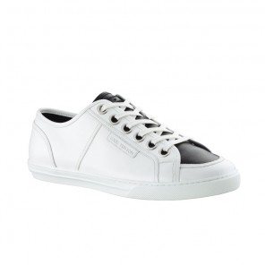 This eye-catching two-tone sneaker in soft calf leather features bold street-inspired details, including a thick outsole and extra-large metallic eyelets.